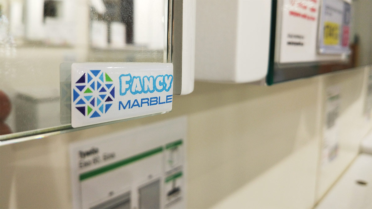 На первом этапе был разработан логотип. Заказчик хотел получить логотип в стиле эклектика — смешение, соединение разнородных стилей, идей, взглядов. Шрифт надписи FANCY - должен быть веселым и молодежным, а MARBLE – строгим, так как название переводится как: модный (орнаментальный, разукрашенный) мрамор.