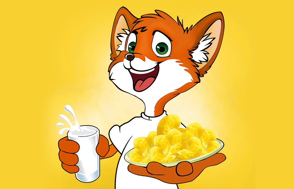 При создании упаковки основное внимание уделялось разработке персонажа. Веселый лисёнок с довольной улыбкой — авторская иллюстрация штатного дизайнера нашей студии. Данный образ обращает на себя внимание как детской аудитории, воспитанной на современной анимационной мультипликации, так и взрослой, за счет своей позитивности, доброжелательности и открытости.