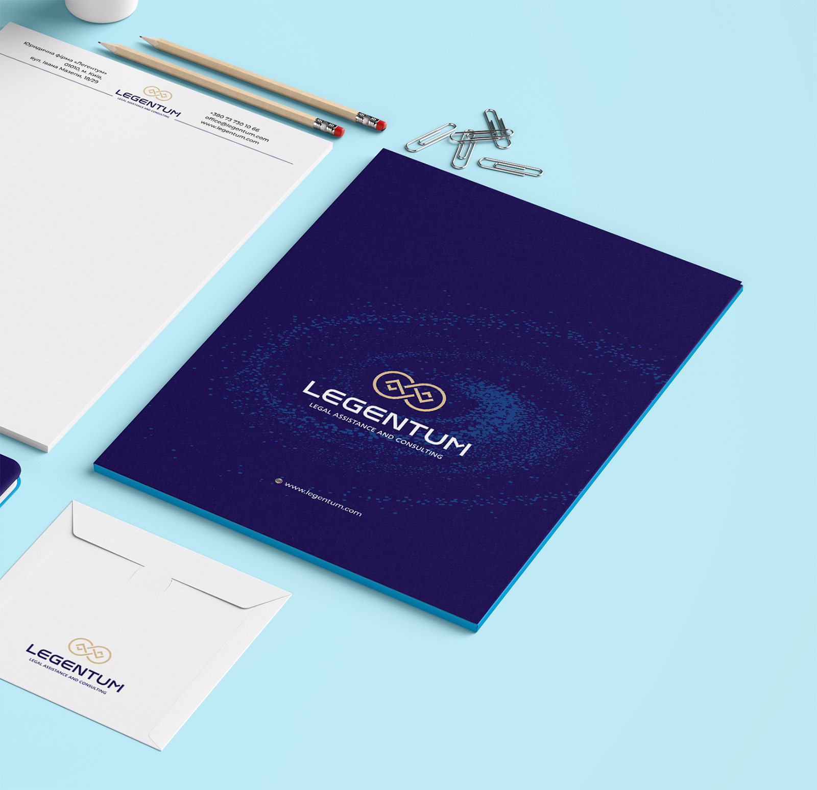 Разработка уникального международного названия, логотипа, фирменного стиля и брендбука для юридической фирмы (Украина, г. Киев).