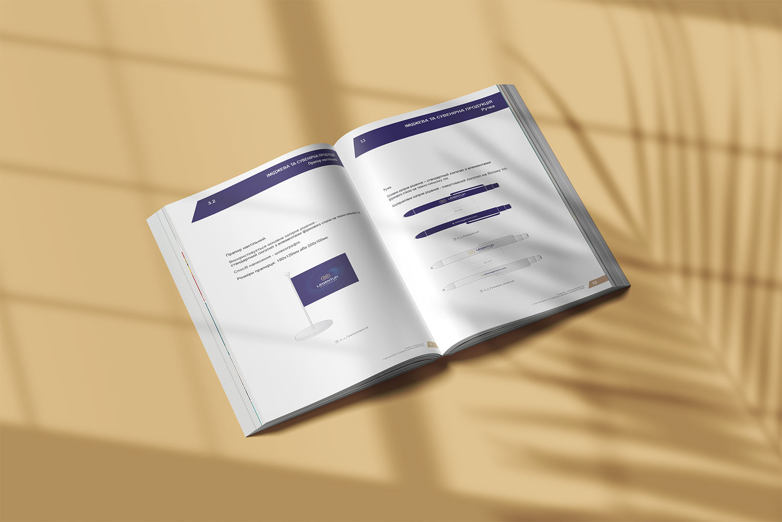 В течение недели было выполнено задание по созданию и согласованию бренда бука. Особое внимание Заказчик просил уделить описанию логотипа и его нанесению на разные плоскости, описание фирменного стиля.