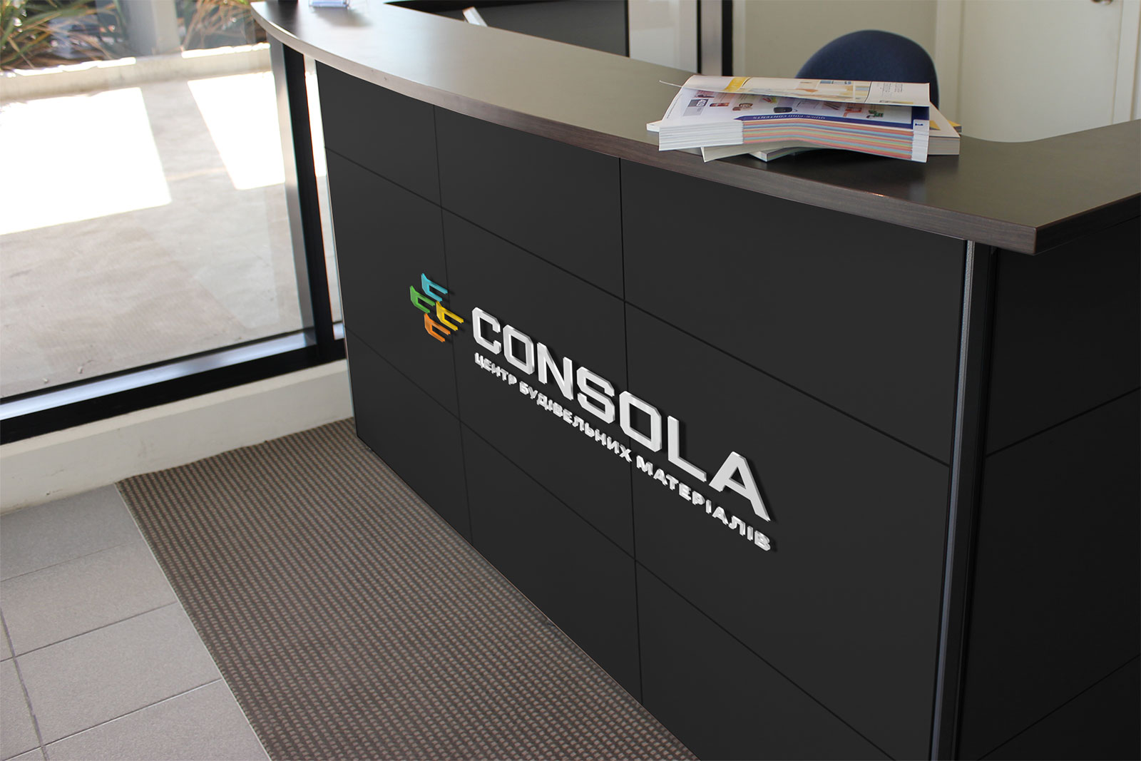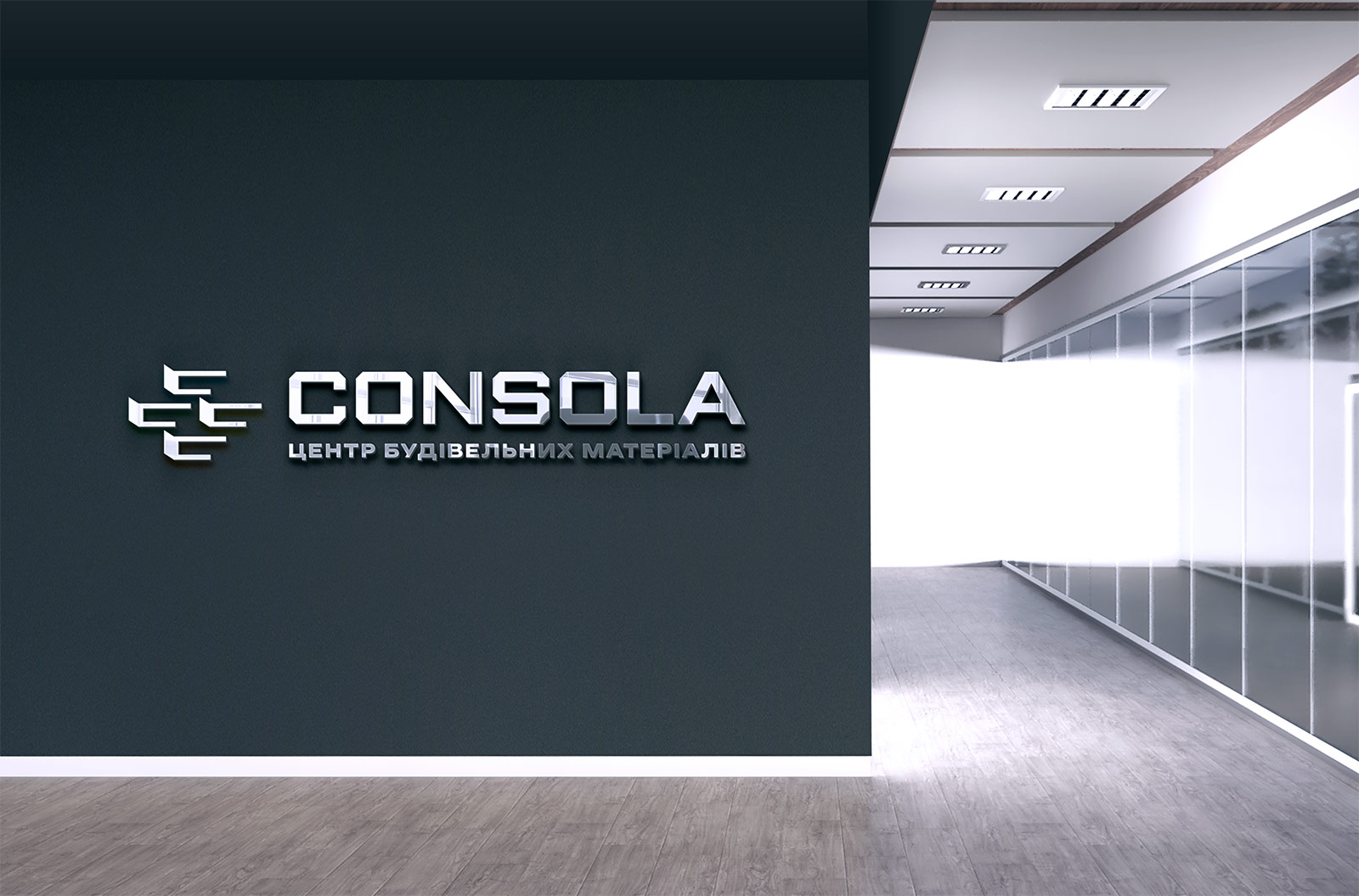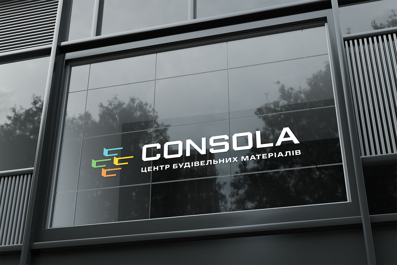 Шрифтовое написание CONSOLA, созданное дизайнерами студии, выдержано в строгом и современном стиле. Чёткие линии, сбалансированные пропорции и лаконичность форм отражают ценности бренда: надёжность, стабильность, уверенность и профессионализм. Для усиления позиционирования и мгновенного понимания направления деятельности логотип дополнен дескриптором «ЦЕНТР БУДІВЕЛЬНИХ МАТЕРІАЛІВ», который кратко и точно передаёт суть бизнеса и делает фирменный стиль более целостным.