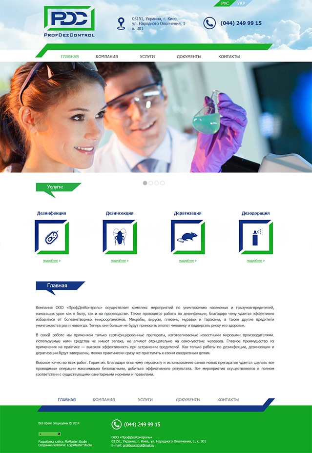 У нашу студію звернулися за створенням логотипу для компанії “ProfDezControl” –компанія, яка здійснює комплекс заходів щодо знищення комах та гризунів-шкідників, що завдають шкоди як у побуті, так і на виробництві. Також компанії проводить роботи з дезінфекції, завдяки чому вдається ефективно позбутися хвороботворних мікроорганізмів.