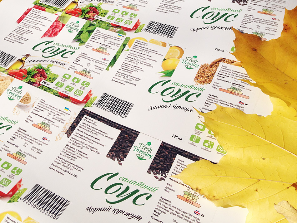 В даний час у світі існують сотні різних заправок для салатів - від класичних до найекзотичніших. До нашої студії звернулися за створенням логотипу та етикетки для нової ТМ Fresh Dressing – соуси для салатів. З англійської назва дослівно перекладається як - Свіжа Заправка або Свіжий соус. На Заході дуже часто зараз соуси називають – дресинг.