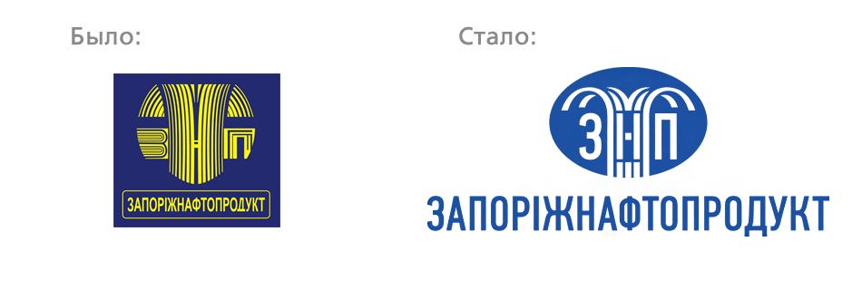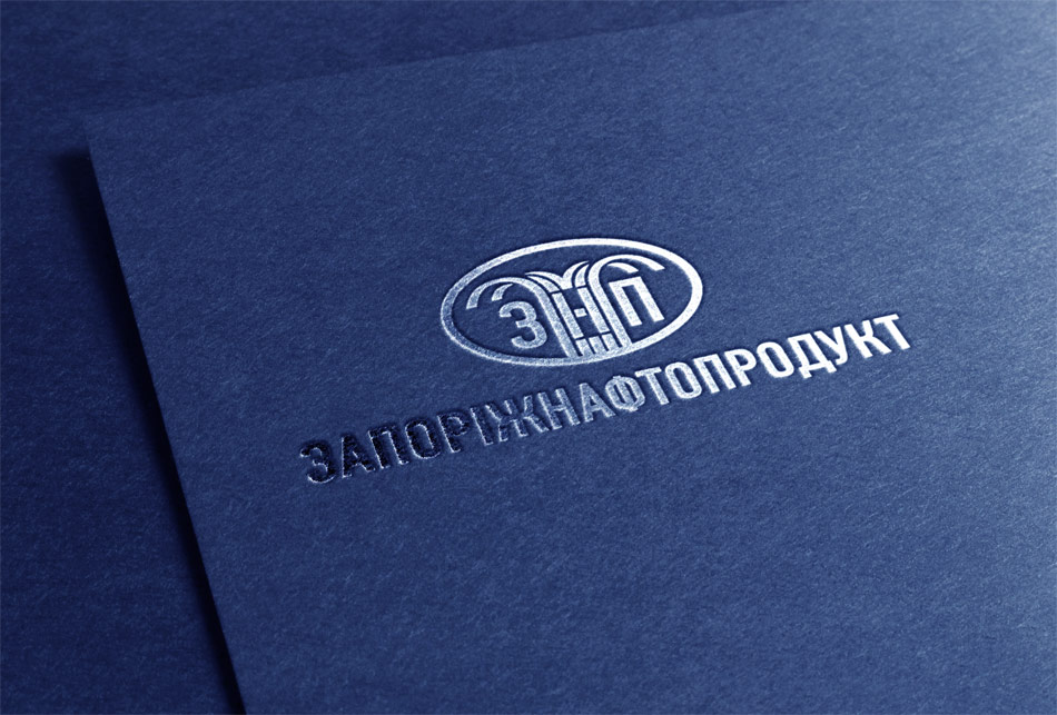 Нашій студії було поставлено наступне завдання: знак (заголовні літери ЗНП + водоспад) вписати в овал, а назву - ЗАПОРІЖНАФТОПРОДУКТ розмістити під знаком, по центру. Кольорова палітра – тільки біла та синя. У процесі роботи Замовнику було запропоновано близько двадцяти унікальних варіантів логотипу. Робота тривала два місяці. У результаті замовником було затверджено наступний логотип.