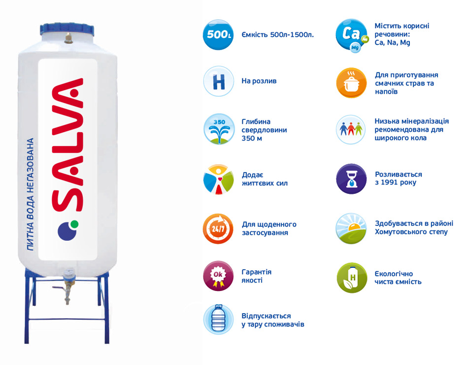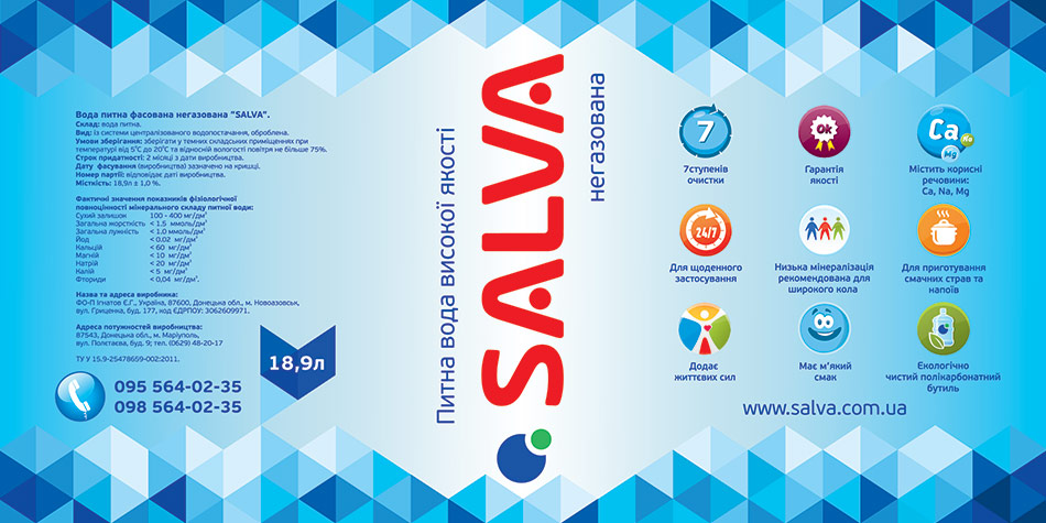 Розроблений логотип SALVA виконаний у суворій манері та відображає природність та екологічність чистої води.