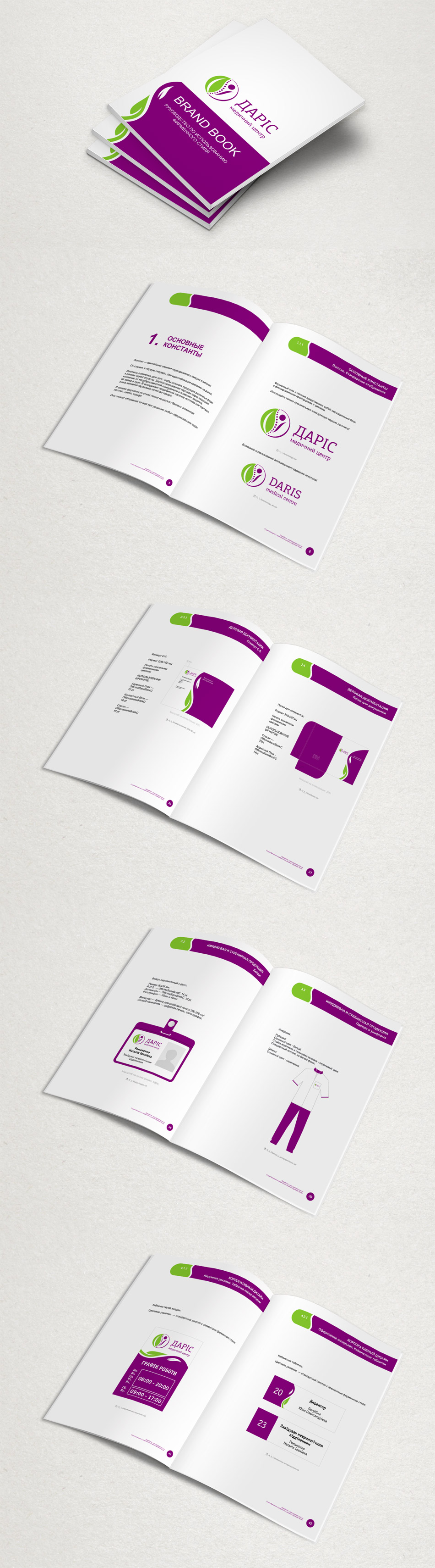 Протягом місяця було виконано завдання щодо створення та узгодження бренду буку медичного центру. Особливу увагу Замовник просив приділити опису логотипу та його нанесенню на різні площини, створенню фірмового стилю, з яким відвідувач клініки зустрінеться на вивісці, в інтер'єрі клініки, кабінетних табличках, одязі персоналу та стелі недалеко від входу до клініки.