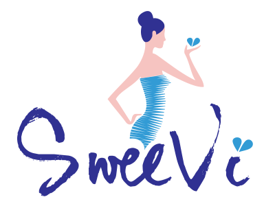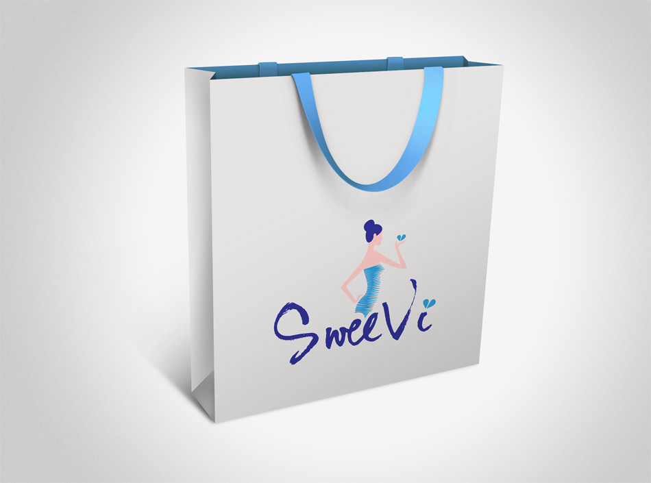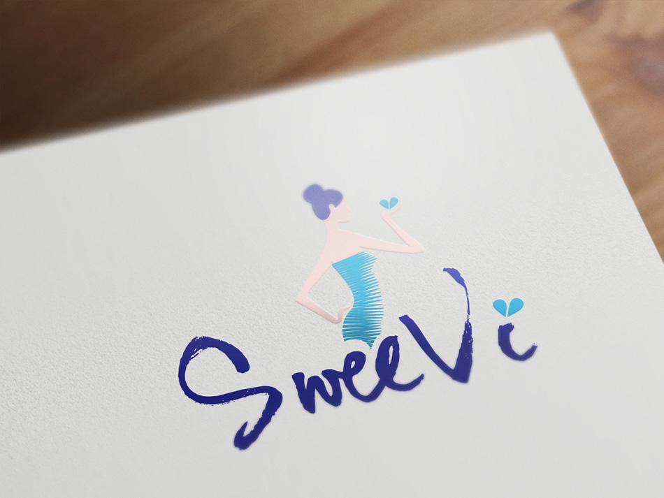 Логотип бренду поєднує в собі стильну дівчину в сукні, створеній з ліній, що відображають нитки тканини та унікального шрифтового написання назви SweeVi. Основною відмінністю стилю бренду є стриманість, строгість, стабільність, лиск, елегантність.