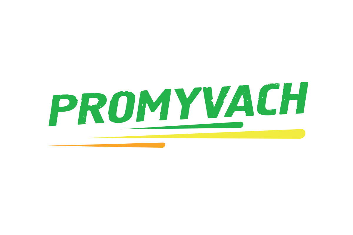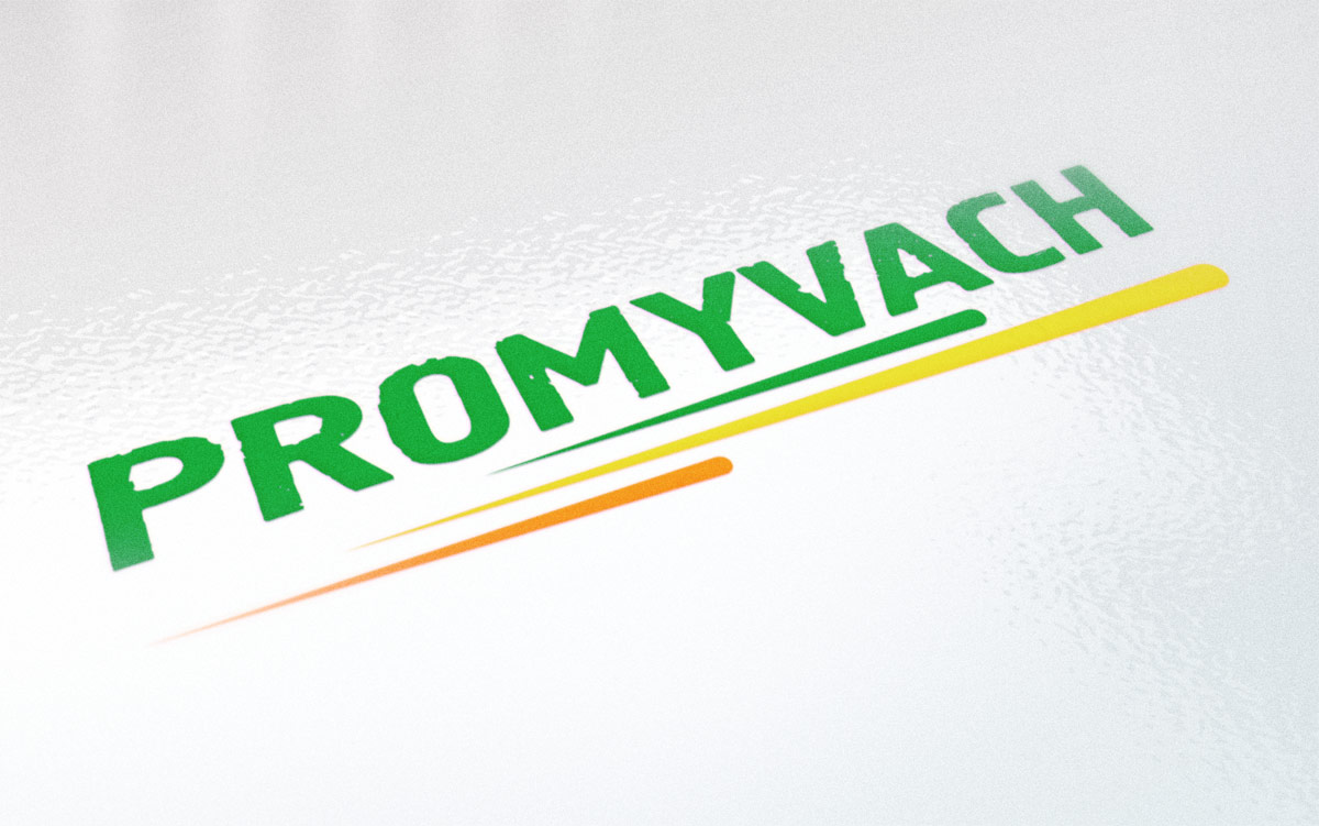 Графічна частина логотипу виконана шляхом поєднання назви “PROMYVACH” та трьох ліній під нею. Усі літери назви мають нерівну структуру та відображають ефект очищення від накипу та корозії. Лінії внизу відбивають динаміку, тобто. швидкий хімічний процес роботи.