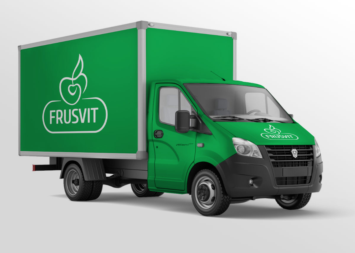 Створений логотип складається із знака у вигляді фрукта виконаного у вигляді промальованого серця (для відображення любові до покупця та своєї роботи) та напису назви FRUSVIT розробленої дизайнерами нашої студії.