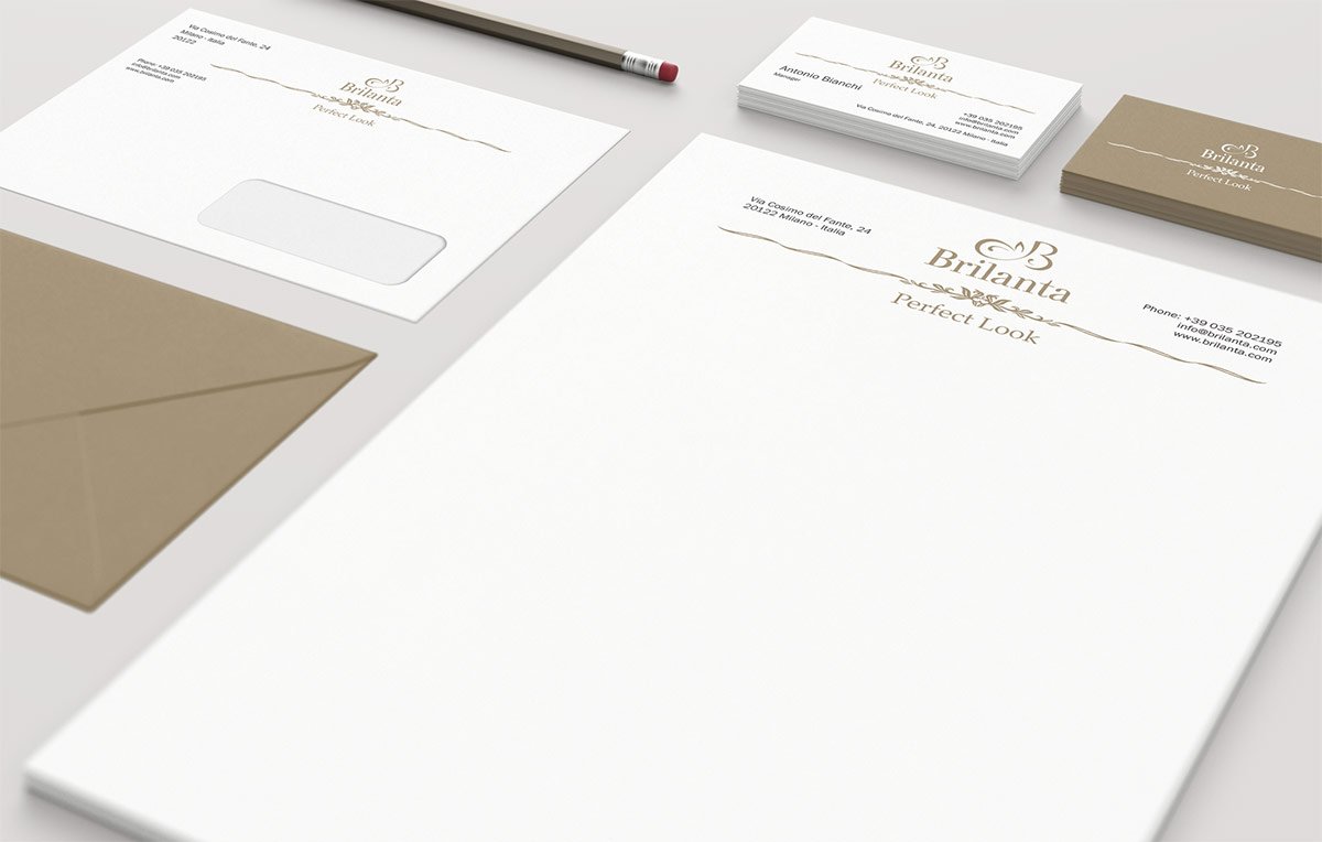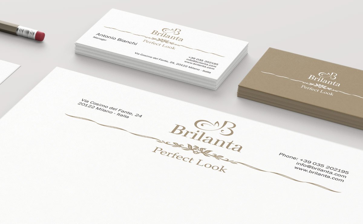 Розроблений логотип виконаний у вигляді монограми. У знаку зашифрована буква “B” з елементами квітки, крила метелика, що пурхає, що надає витонченості, елегантності та відображає високий рівень виробів. Шрифтове написання назви “Brilanta” у логотипі розроблено дизайнерами нашої студії та виконане у суворій манері виконання.