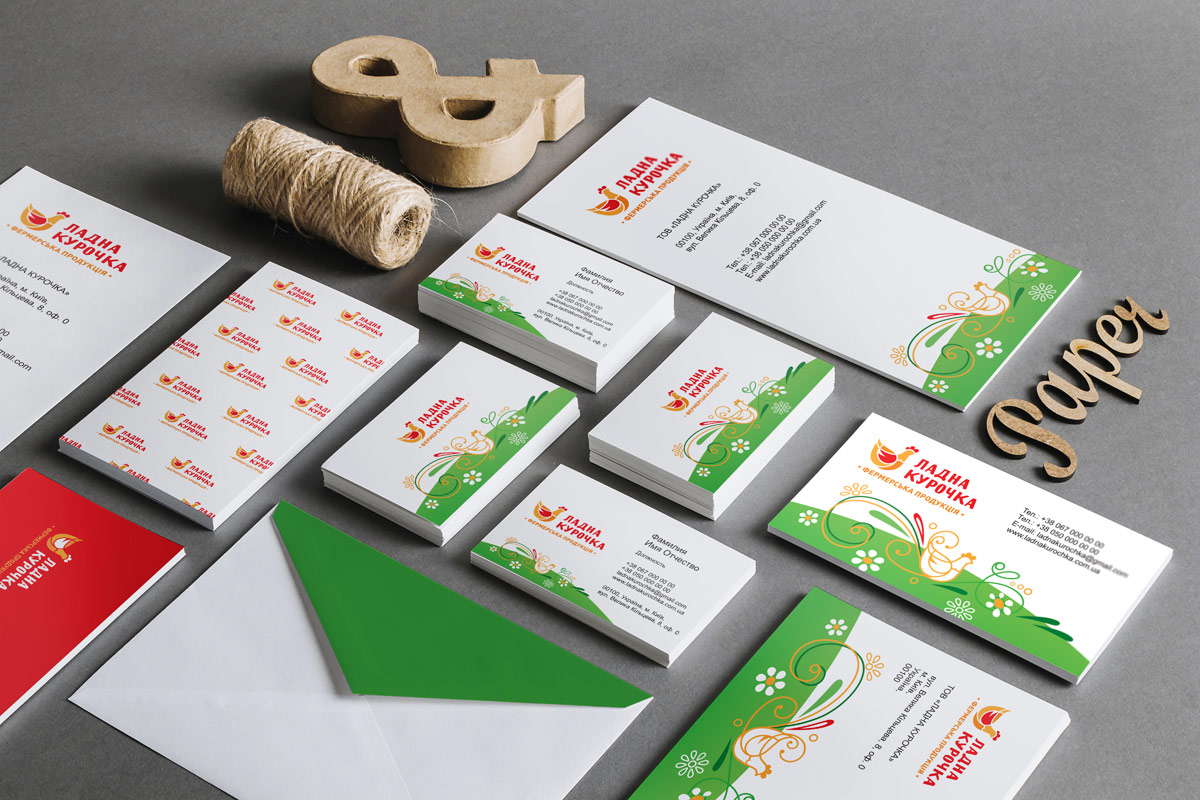 Особливу увагу хочеться приділити фірмовому стилю, який відображає натуральність бренду. В рамках замовлення розроблено стандартний набір документів: візитні картки, конверт, фірмовий бланк. Розроблений фірмовий стиль, що складається з елементів яскравого літнього лужка, відображає природність і високу якість фермерської продукції. Основною відмінністю стилю є запам'ятовуваність.