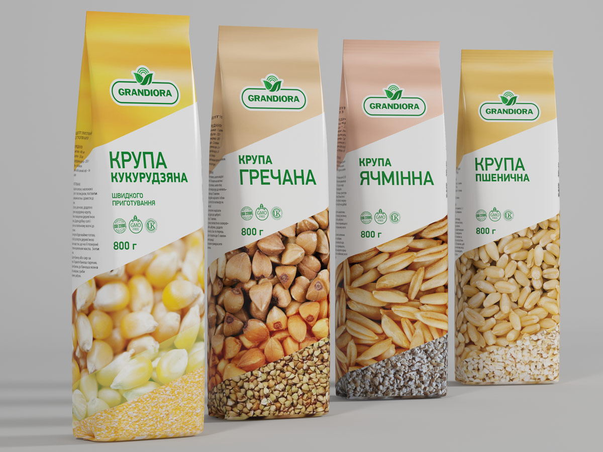 Розробка назви логотипу упаковки для бренду бакалії крупи борошно цукор