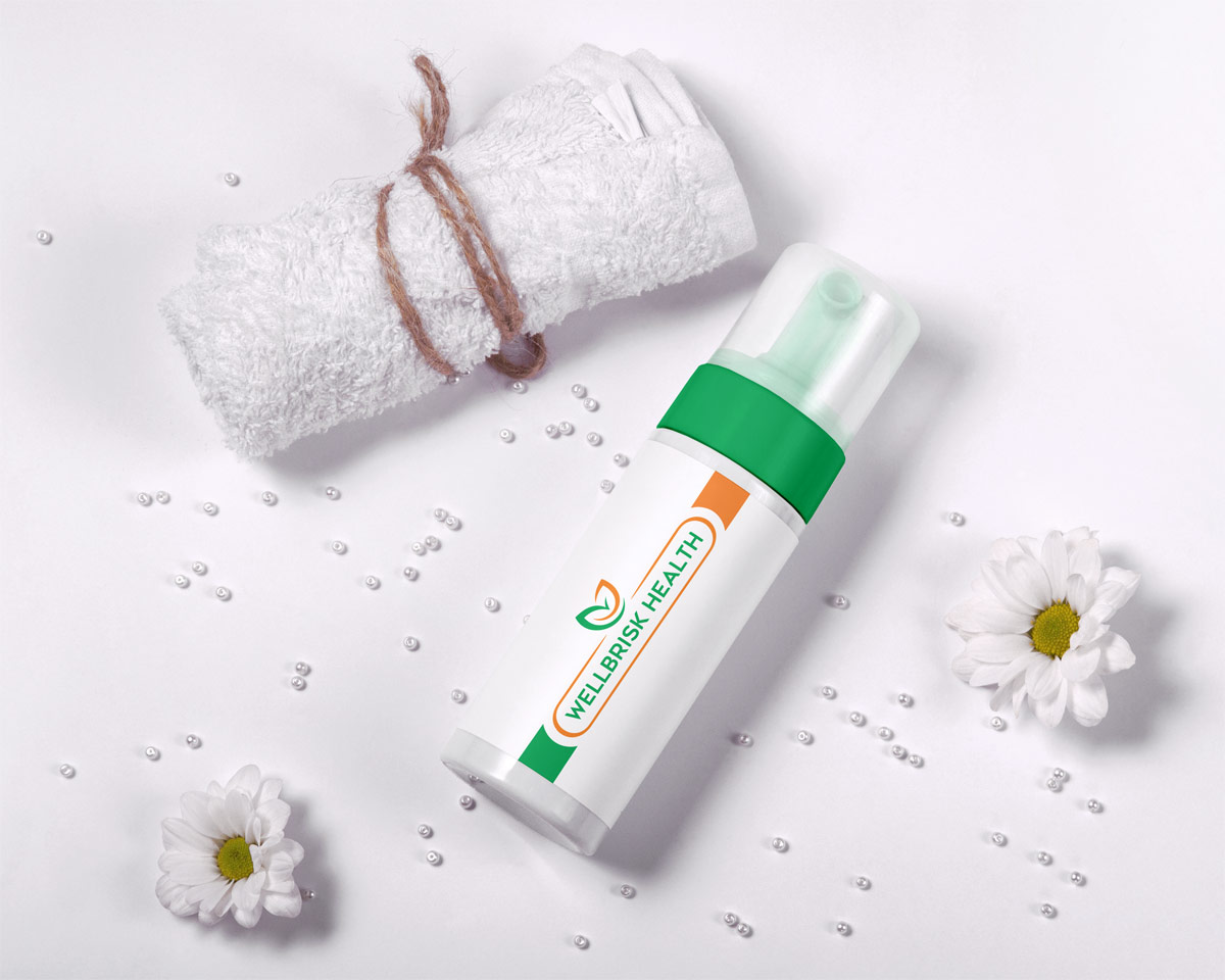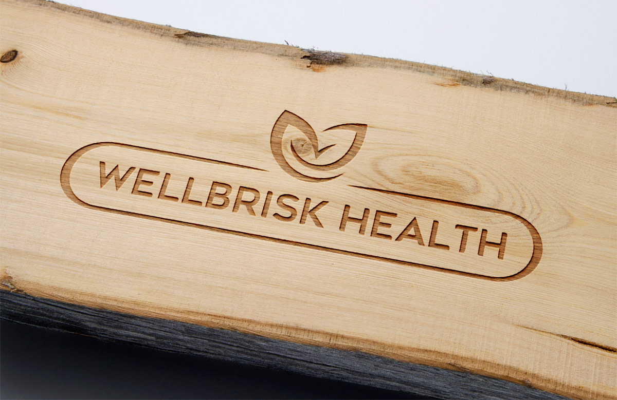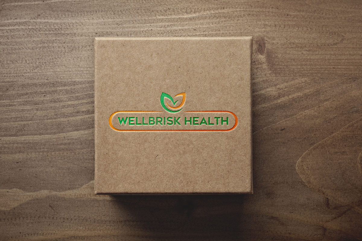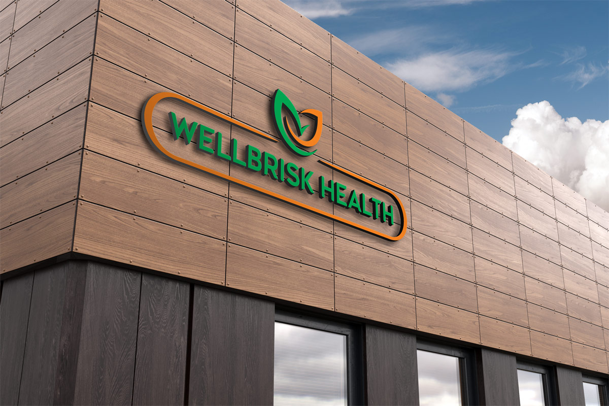 Логотип виконаний у вигляді знака зі з'єднаних листочків та овалу, в який вписано назву “WELLBRISK HEALTH”. Шрифтове написання назви у логотипі розроблено дизайнерами нашої студії.