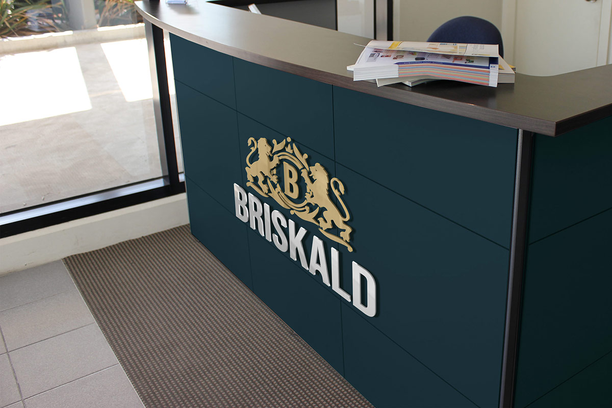 Шрифтове написання назви “BRISKALD” розроблено дизайнерами нашої студії та виконане у строгому стилі.