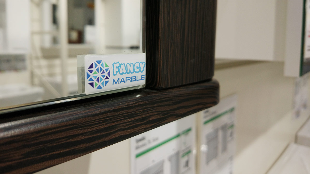На первом этапе был разработан логотип. Заказчик хотел получить логотип в стиле эклектика — смешение, соединение разнородных стилей, идей, взглядов. Шрифт надписи FANCY - должен быть веселым и молодежным, а MARBLE – строгим, так как название переводится как: модный (орнаментальный, разукрашенный) мрамор.