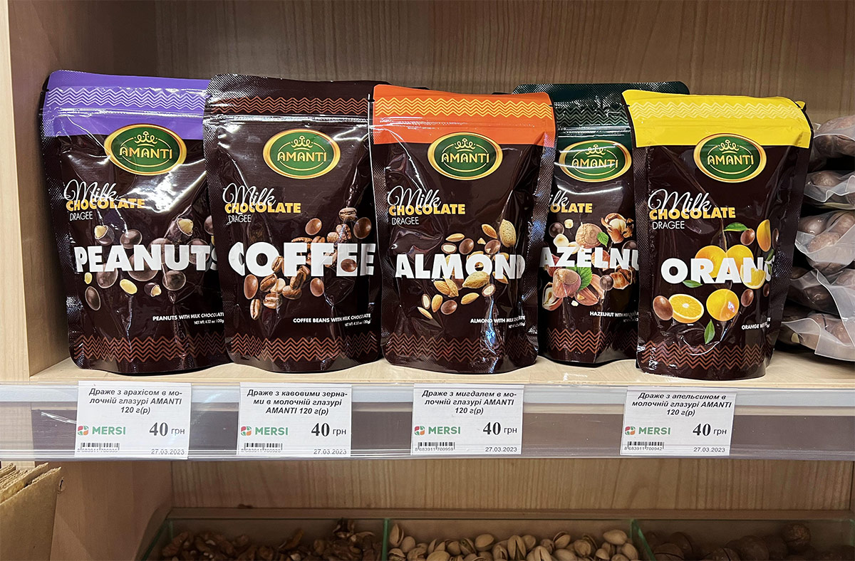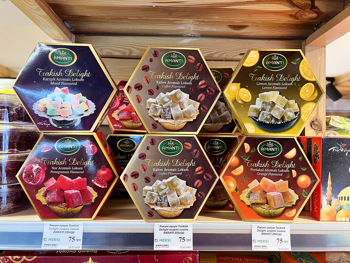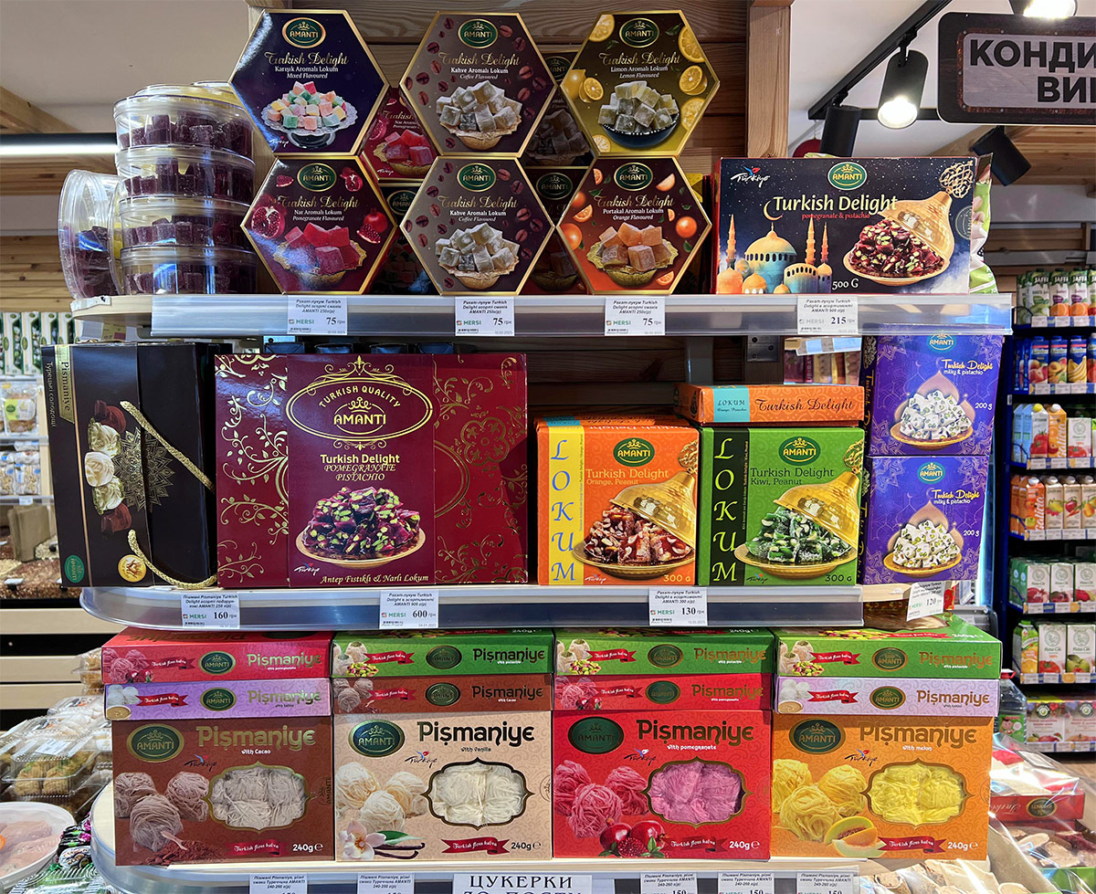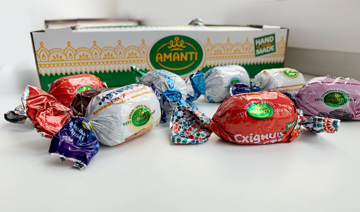AMANTI - конфеты, покрытые черной или белой глазурью (рахат-лукум покрытый белой пудрой).