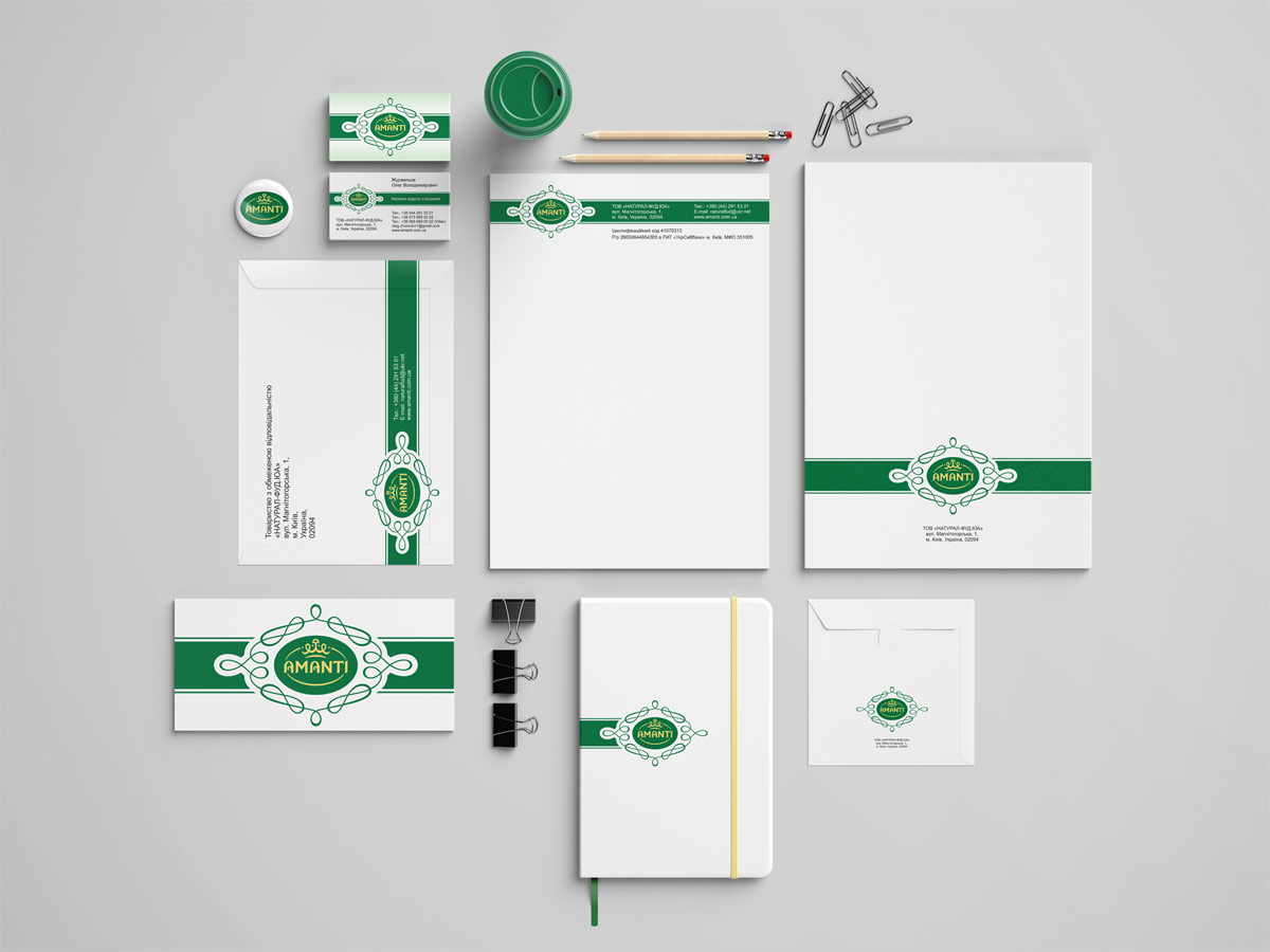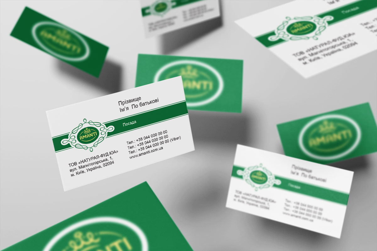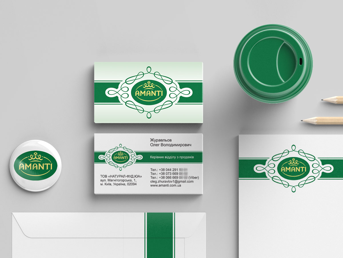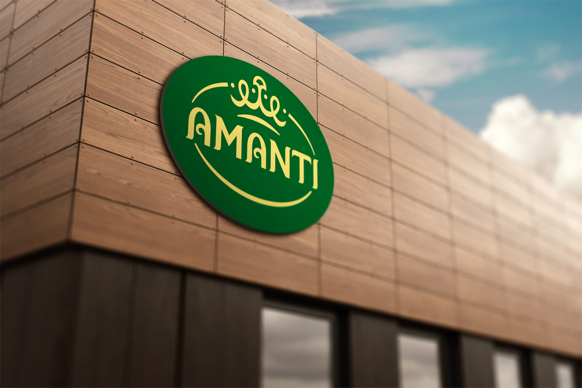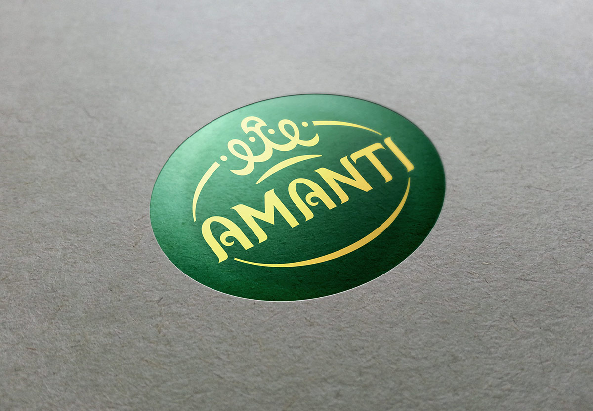 Шрифтовое написание названия в логотипе “AMANTI” разработано дизайнерами нашей студии и адаптировано под общий стиль бренда.