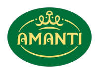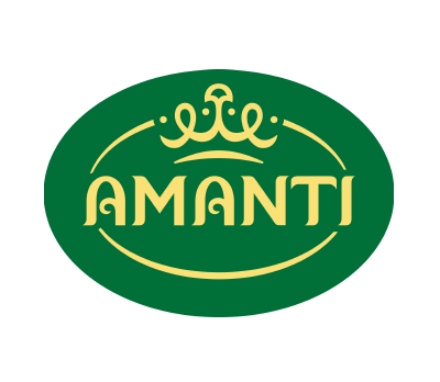 Логотип выполнен в виде овала, в который вписано название “AMANTI”, и знака, напоминающего стилизованную корону (для передачи высокого уровня продукции), которые выполнены в едином стиле.