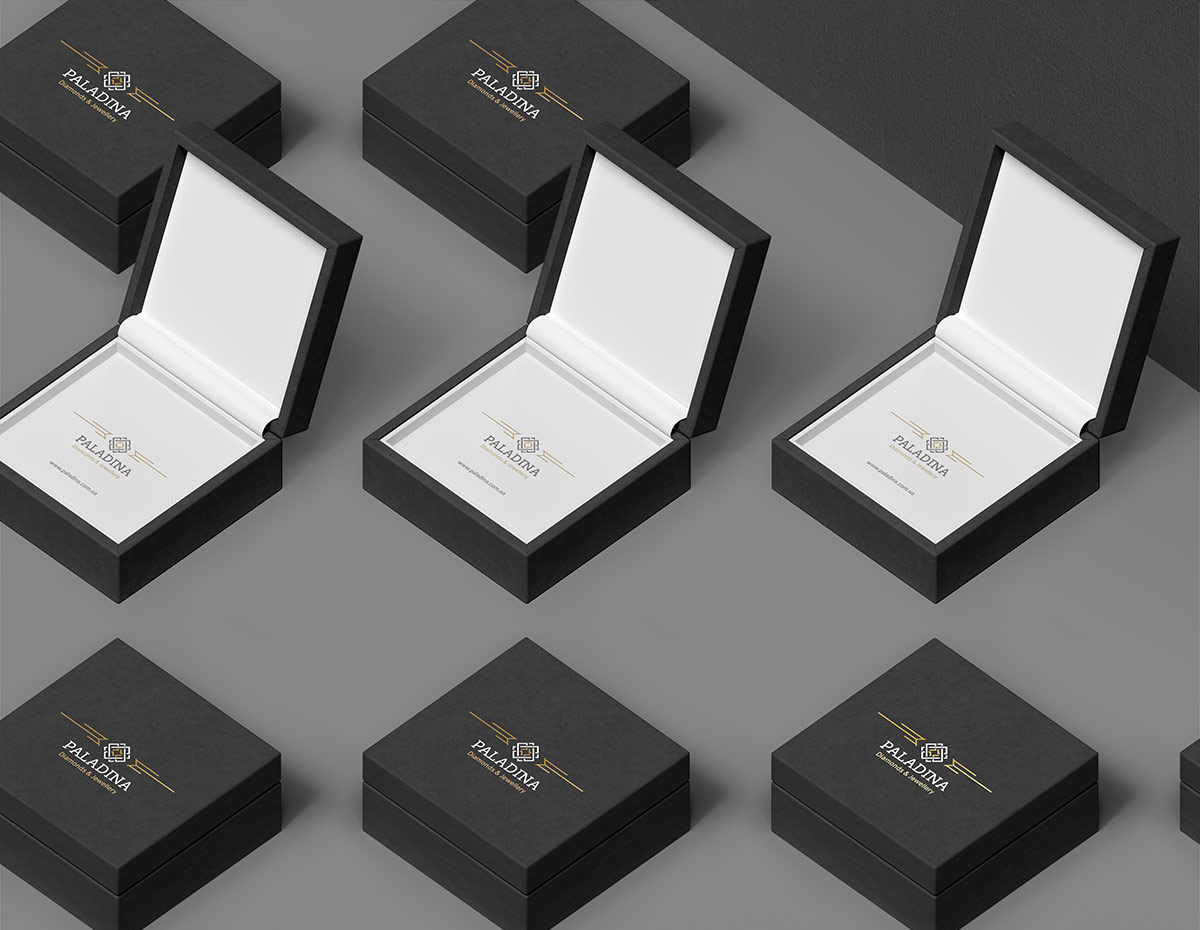 Шрифтовое написание названия “PALADINA” в логотипе разработано дизайнерами нашей студии и адаптировано под общий стиль бренда. Для расшифровки деятельности было принято использовать в логотипе дескриптор “Diamonds & Jewellery”.