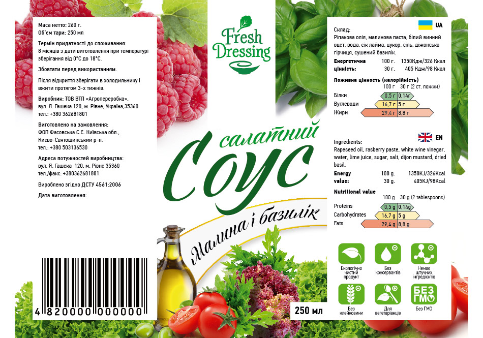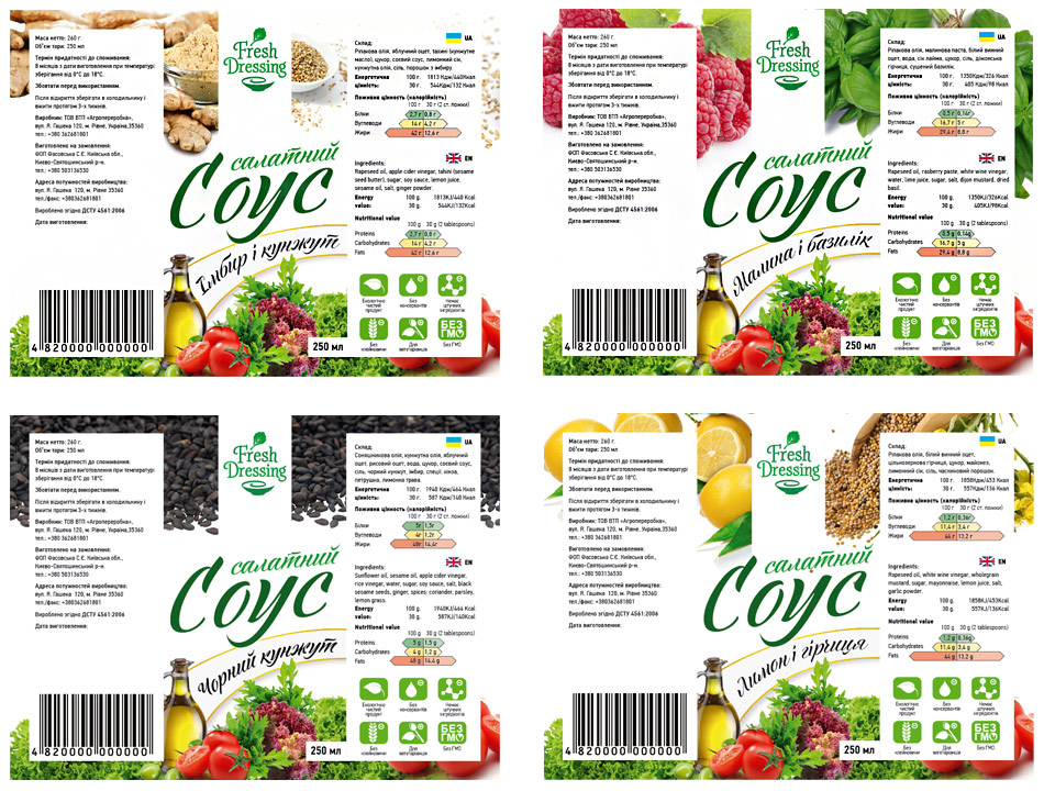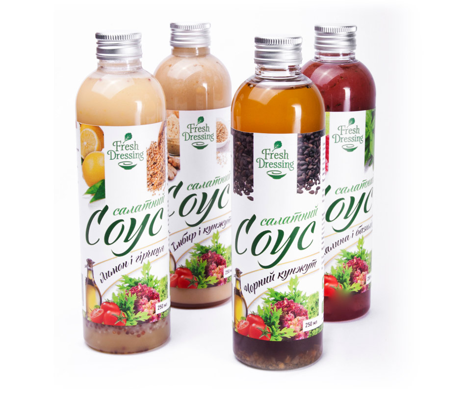 В даний час у світі існують сотні різних заправок для салатів - від класичних до найекзотичніших. До нашої студії звернулися за створенням логотипу та етикетки для нової ТМ Fresh Dressing – соуси для салатів. З англійської назва дослівно перекладається як - Свіжа Заправка або Свіжий соус. На Заході дуже часто зараз соуси називають – дресинг.