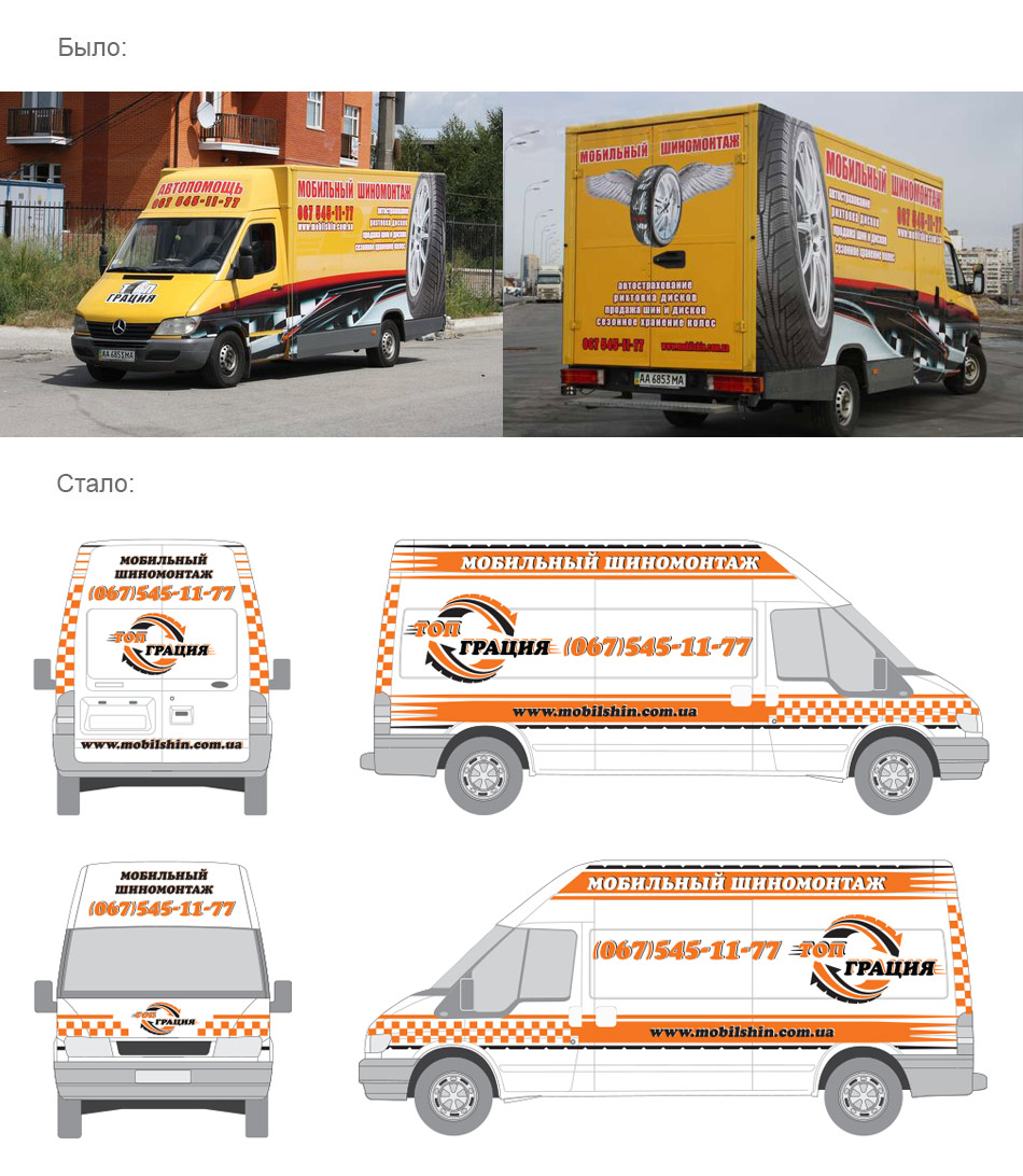 На другому етапі було розроблено концепції фірмового стилю на основі оформлення автомобіля. Основні вимоги до дизайну: зрозуміло, просто та стильно.