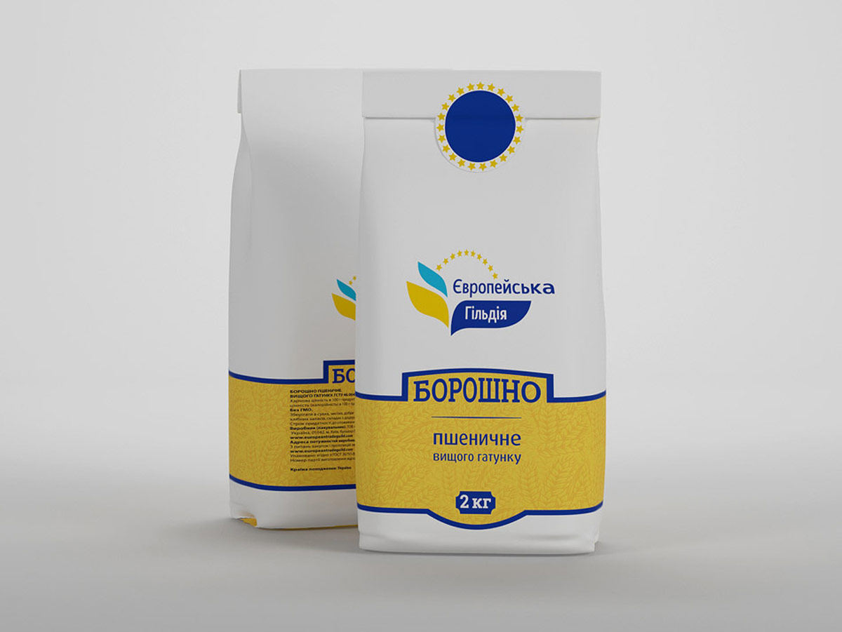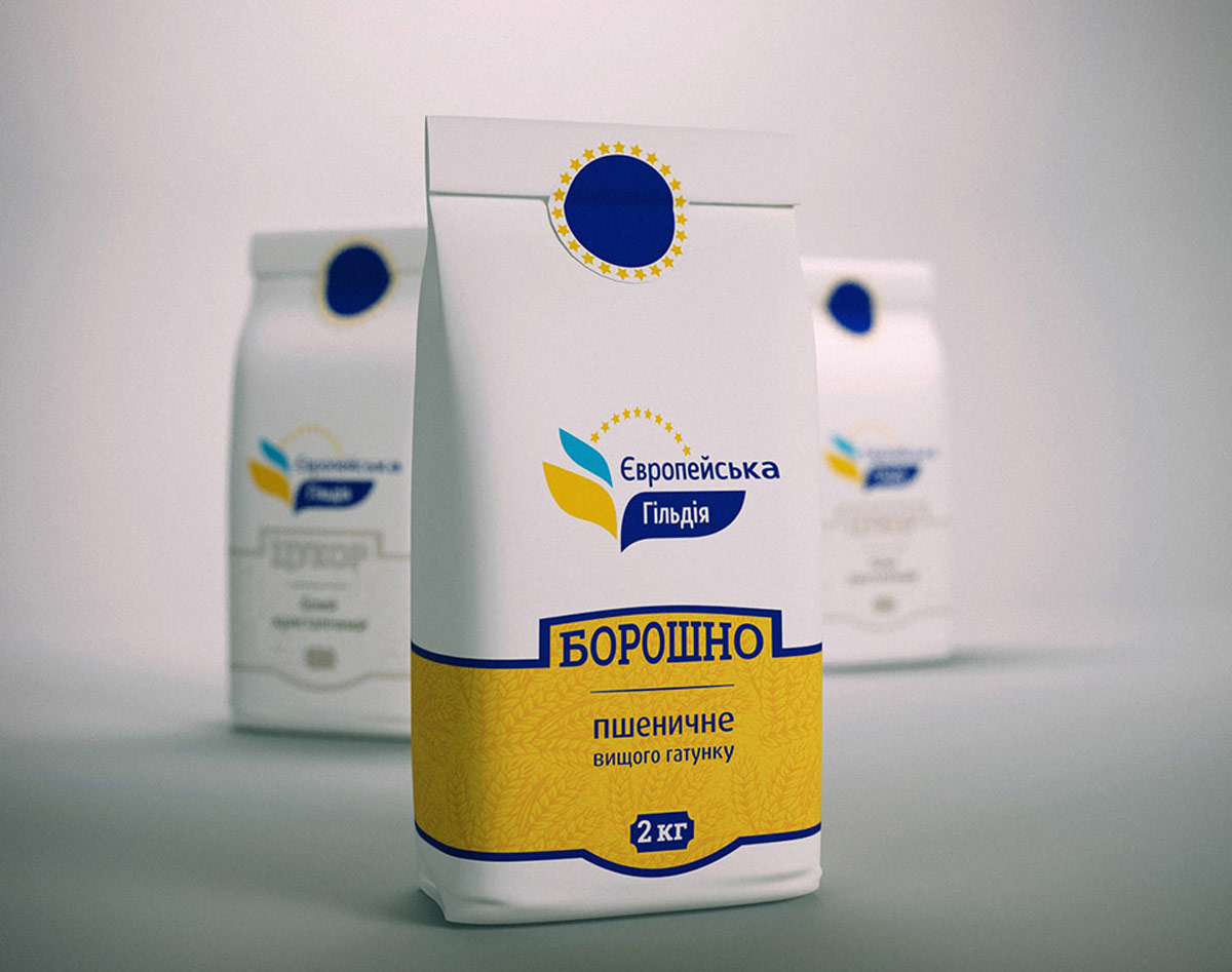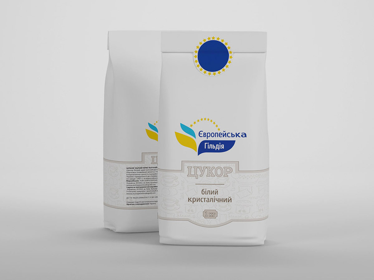 Для формування сприятливого образу продуктової лінійки TM «Європейська Гільдія», для кожного виду упаковки було розроблено привабливий патерн – ілюстрація, який докладно розповідають про те, що покупець знайде всередині та передають унікальний характер нового для українського ринку формату комунікації (для цукру – це кухоль чаю, печиво, банку варення, кекси; для борошна – це колоски пшениці). Дизайн розроблено з урахуванням функціональних особливостей товару. Кожна упаковка має дуже зручний клапан (наклейка) у верхній частині упаковки, для того, щоб можна було зручно потім її закрити.