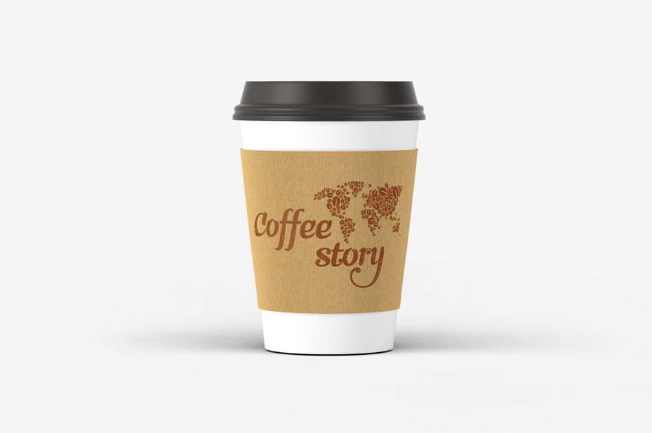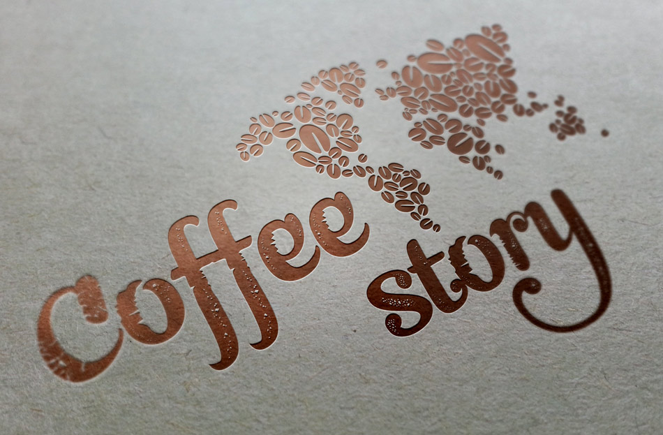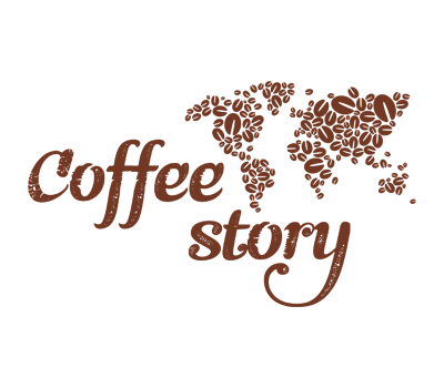 Прямий переклад назви Cоffee Story привів нас до використання в логотипі образу карти світу, яка виконана з зерен кави різного розміру і шрифтової назви розробленої великим шрифтом, що говорить про людину-мандрівника, яка пише історію своїх пригод куточки світу.