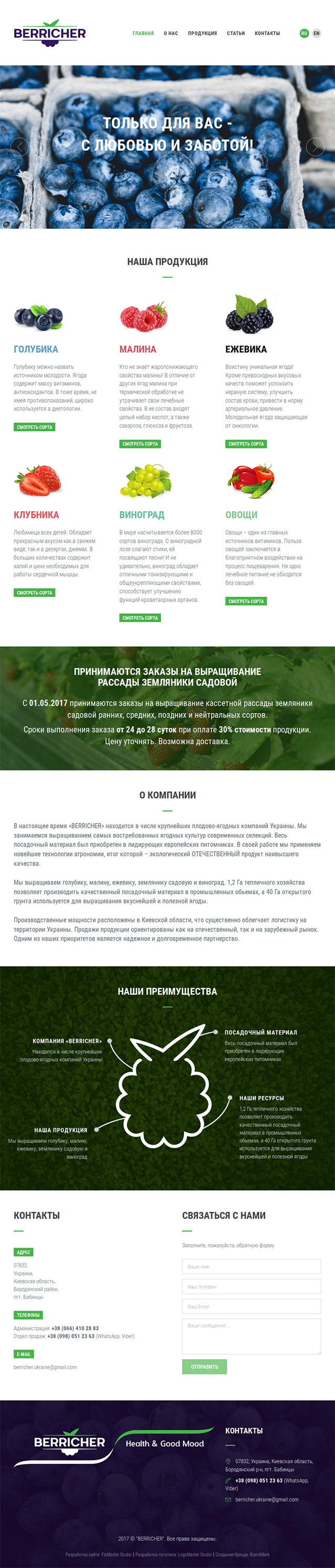 Розробка міжнародної назви компанії, яка є одним із найбільших виробників ягід в Україні. Компанія пропонує клієнтам широкий асортимент якісної та екологічно чистої продукції: малина, полуниця, ожина, лохина. Весь процес вирощування, сортування та пакування відповідає європейським стандартам якості та безпеки продукції.