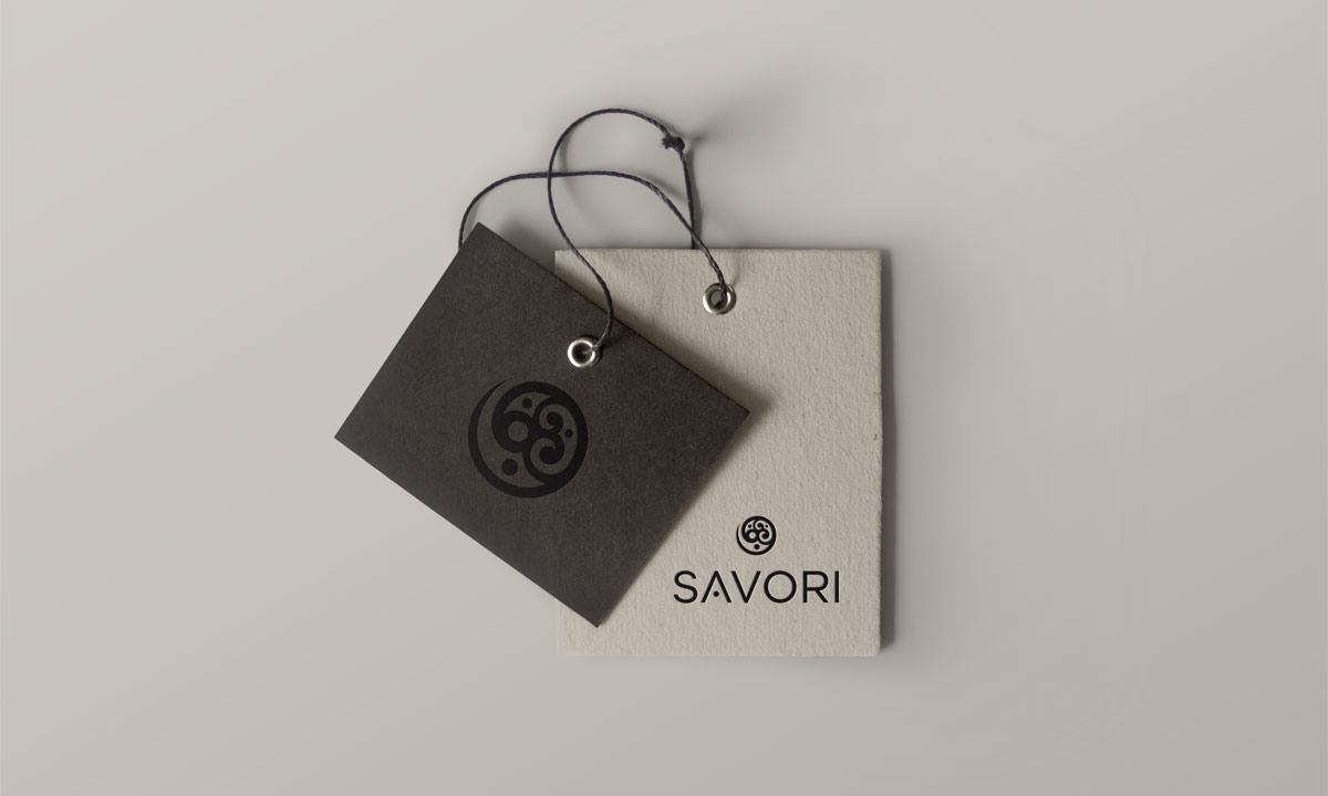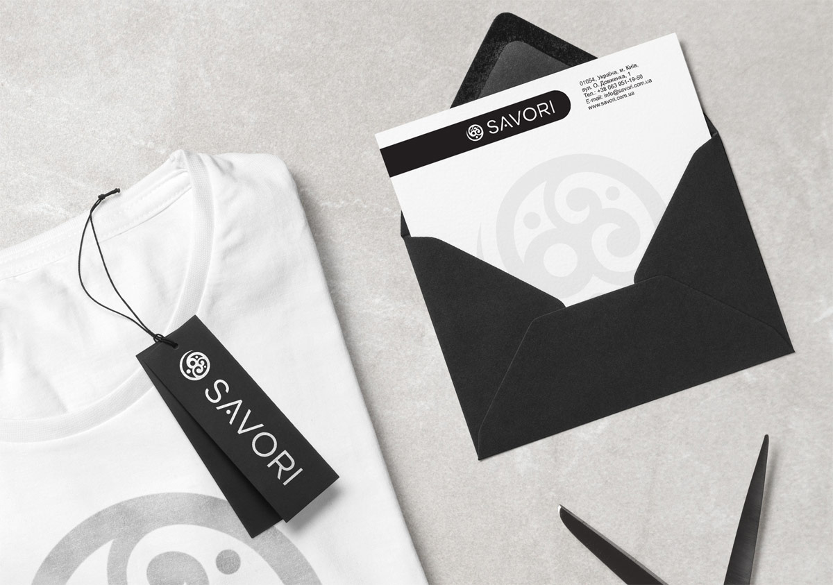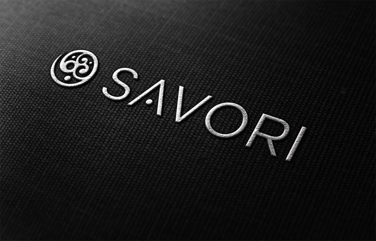 Чорний колір логотипу відображає строгість і чудово поєднується з усіма іншими кольорами. Шрифтове написання назви “SAVORI” у логотипі розроблено дизайнерами нашої студії та адаптовано під загальний стиль бренду.