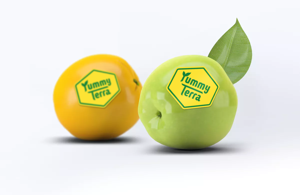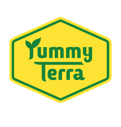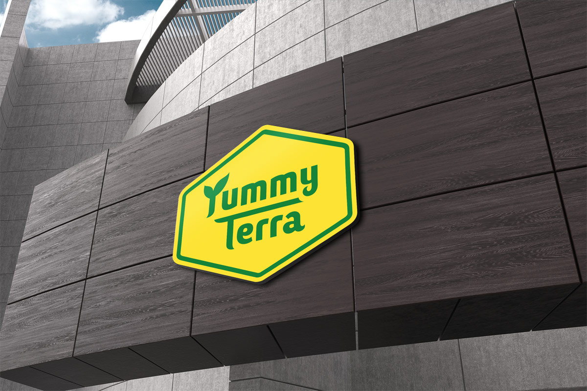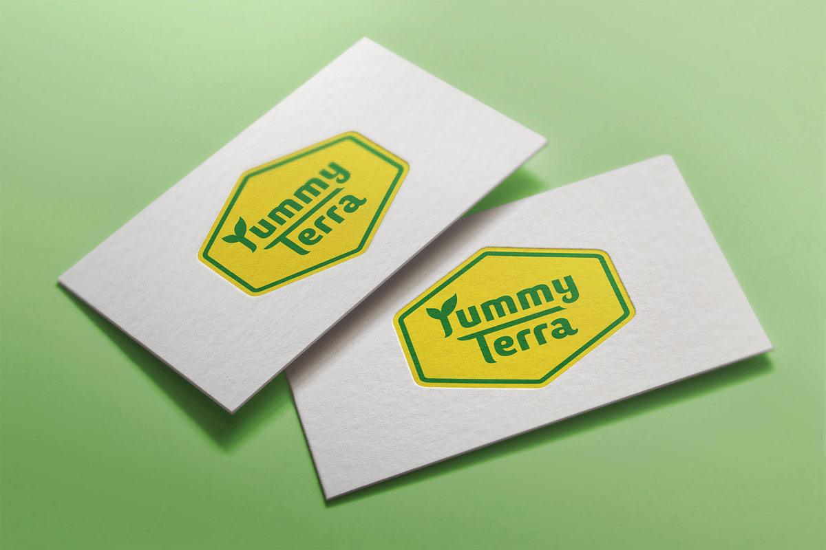 Логотип виконаний у вигляді шестикутника, в який вписано назву Yummy Terra, де перша літера назви розроблена у вигляді листочків рослини. Шрифтове написання назви у логотипі розроблено дизайнерами нашої студії.