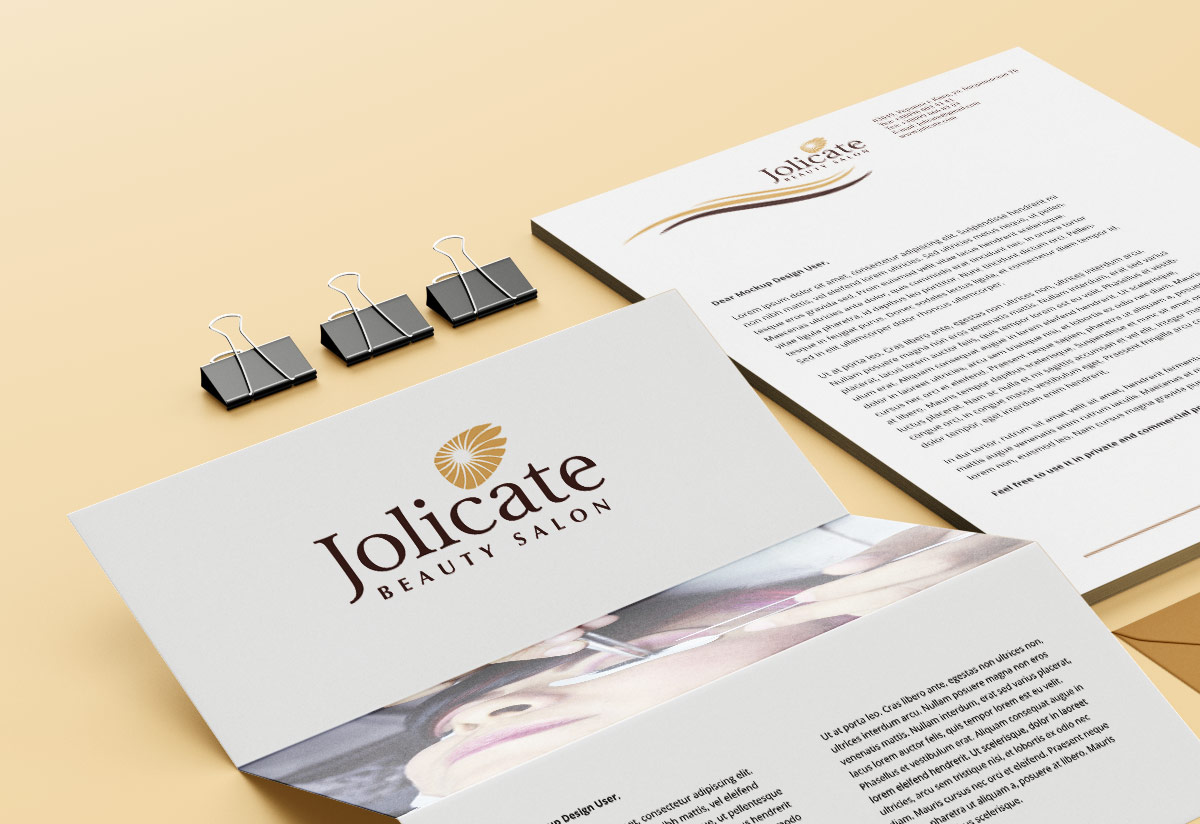 Шрифтове написання назви Jolicate в логотипі розроблено дизайнерами нашої студії та адаптовано під загальний стиль бренду.
