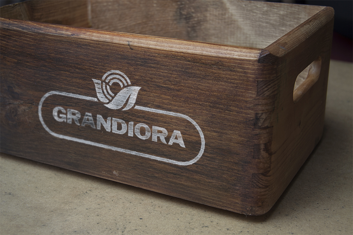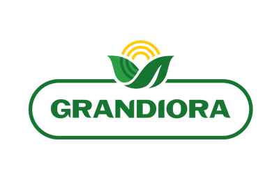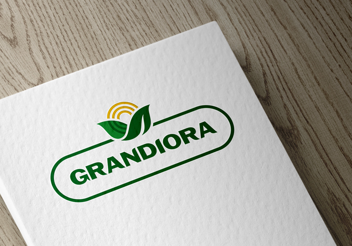 Логотип складається з назви торгової марки та знака у вигляді сонця та листочків. Шрифтове написання назви у логотипі “GRANDIORA” розроблено дизайнерами нашої студії та адаптовано під загальний стиль бренду.