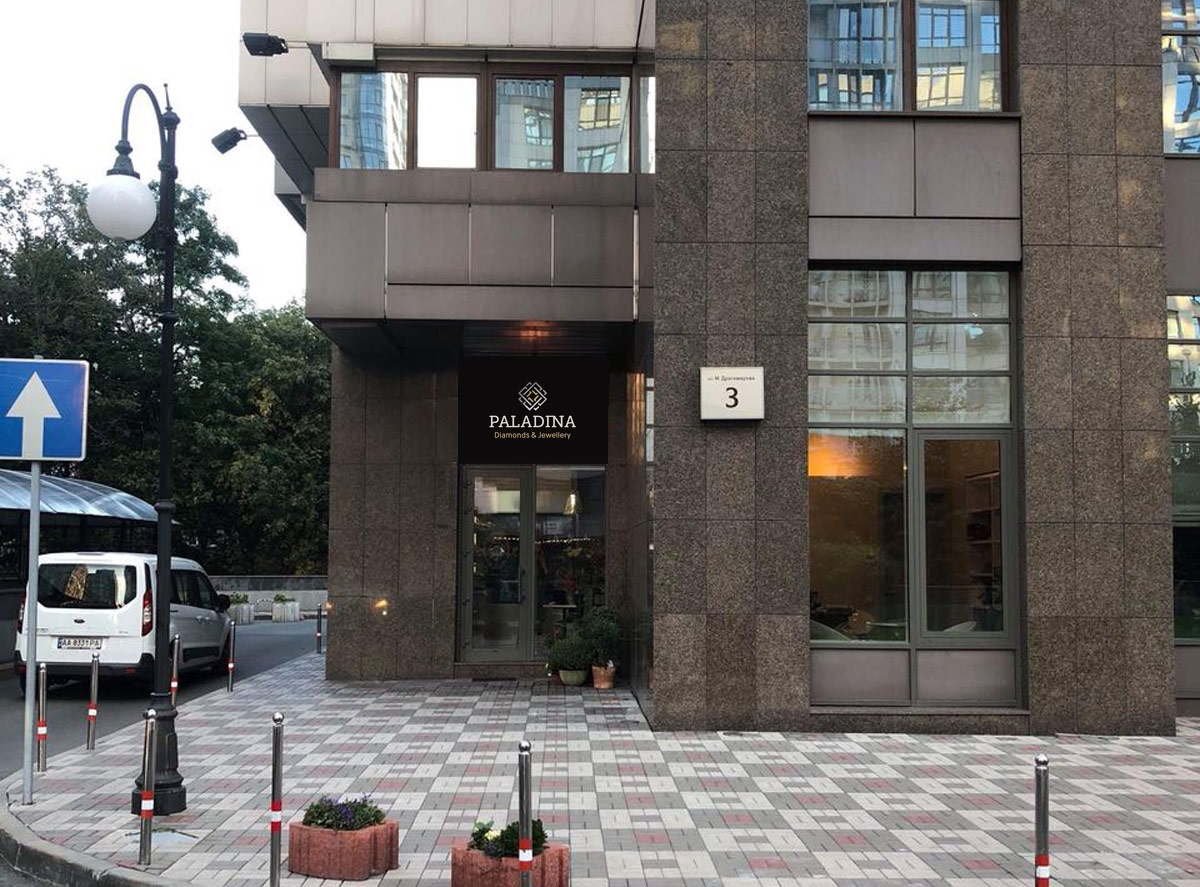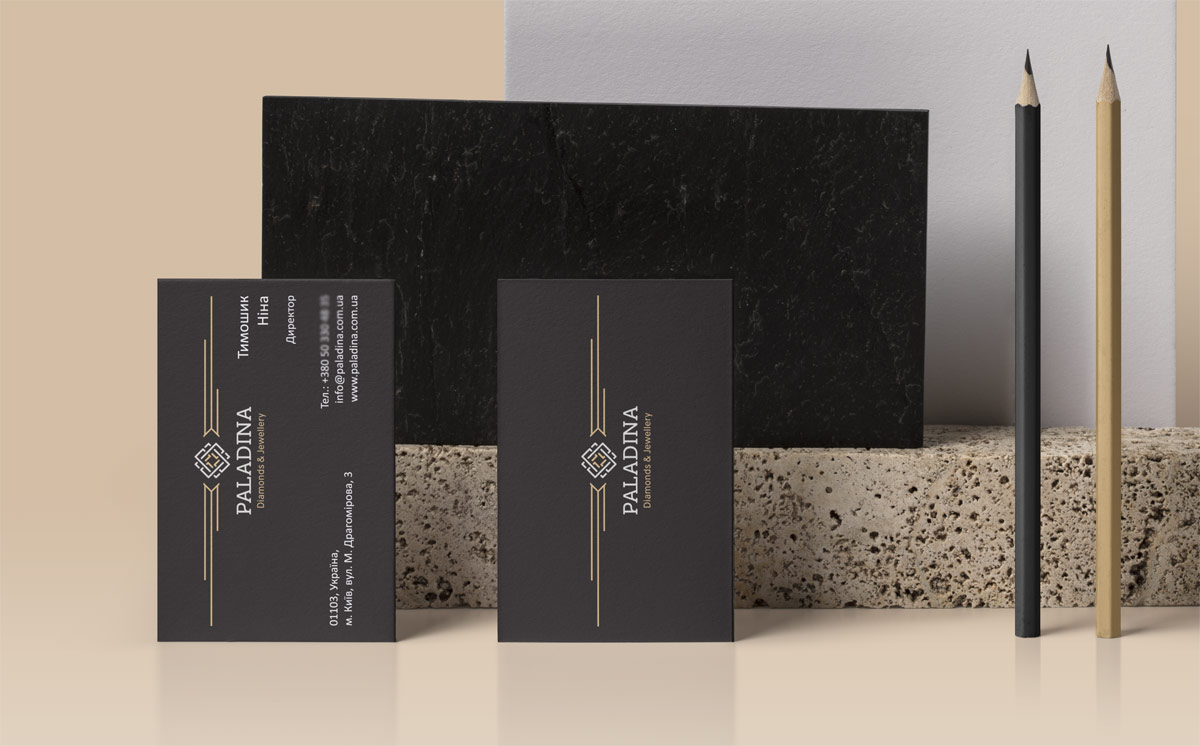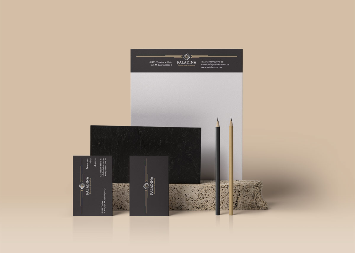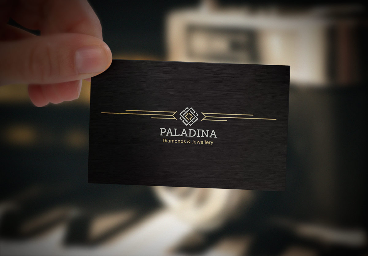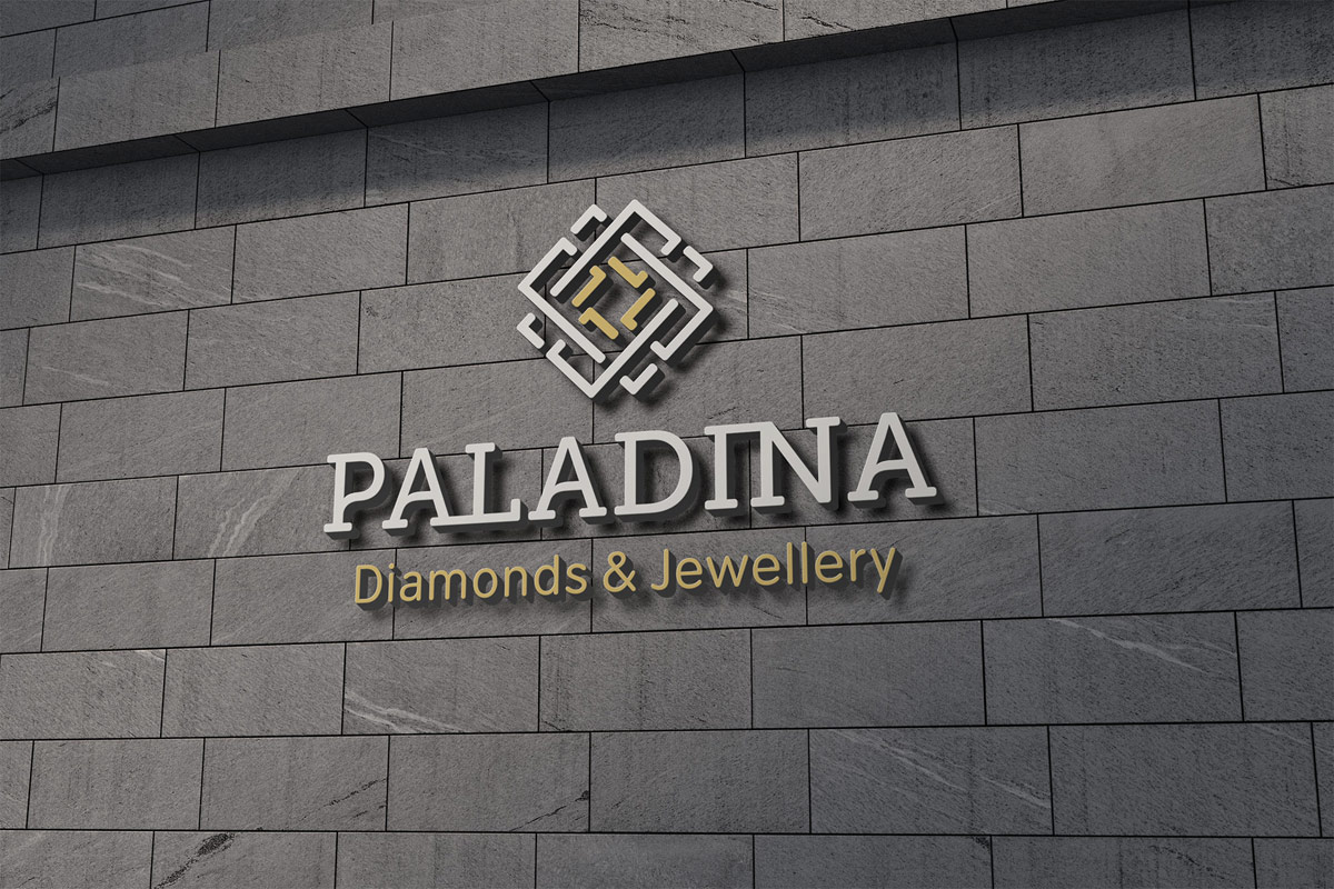 Шрифтове написання назви “PALADINA” у логотипі розроблено дизайнерами нашої студії та адаптовано під загальний стиль бренду. Для розшифровки діяльності було використано в логотипі дескриптор “Diamonds & Jewellery”.