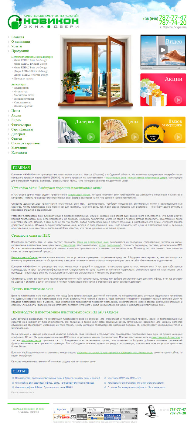 Компанія з м. Одеса (Україна) працює з 2004 року і на сьогоднішній день є одним з найбільших виробників металопластикових вікон та дверей з німецького профілю REHAU на півдні України.