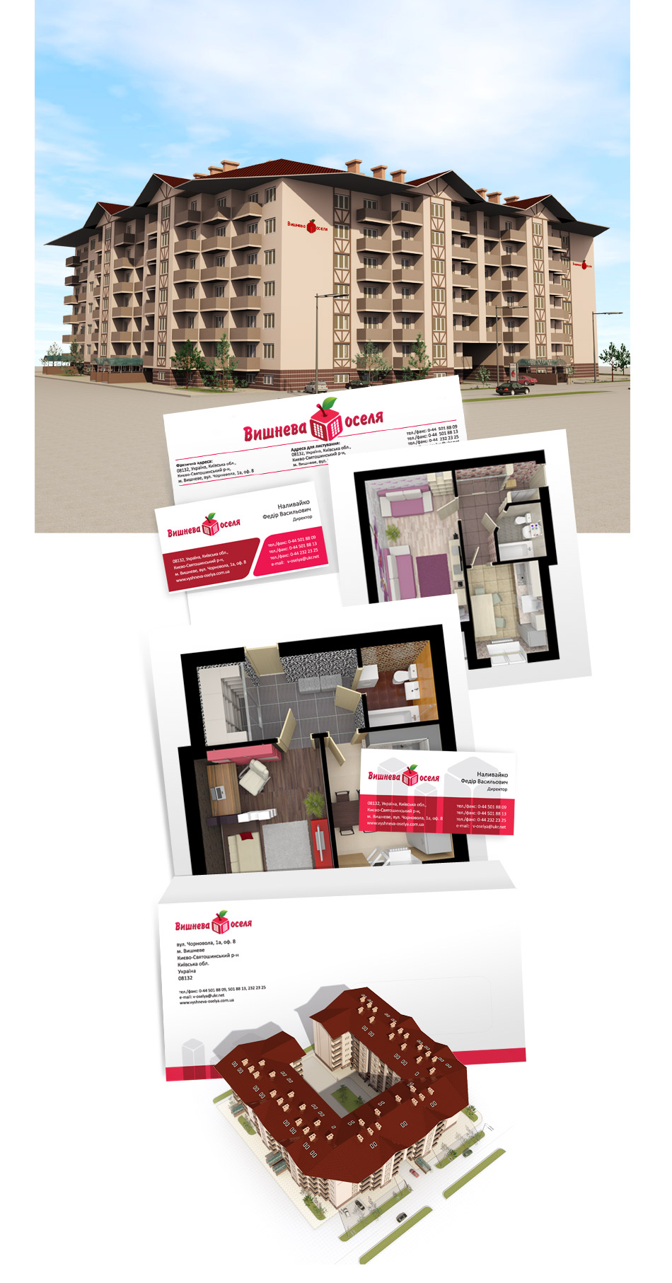 Роботу на замовлення 3D візуалізації житлового комплексу, логотипу, фірмового стилю, сайту, борда, брошури та іншої зовнішньої реклами зробили швидко та чітко – як і домовлялися.