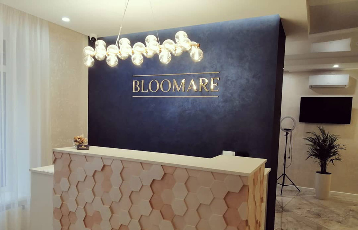 Назва beauty salon “BLOOMARE” передає море свіжості, чарівності та розквіту, що дуже добре підходить для модного та статусного салону краси. Після відвідування салону краси жінка перетворюється, розквітає і виглядає чарівно та чарівно.